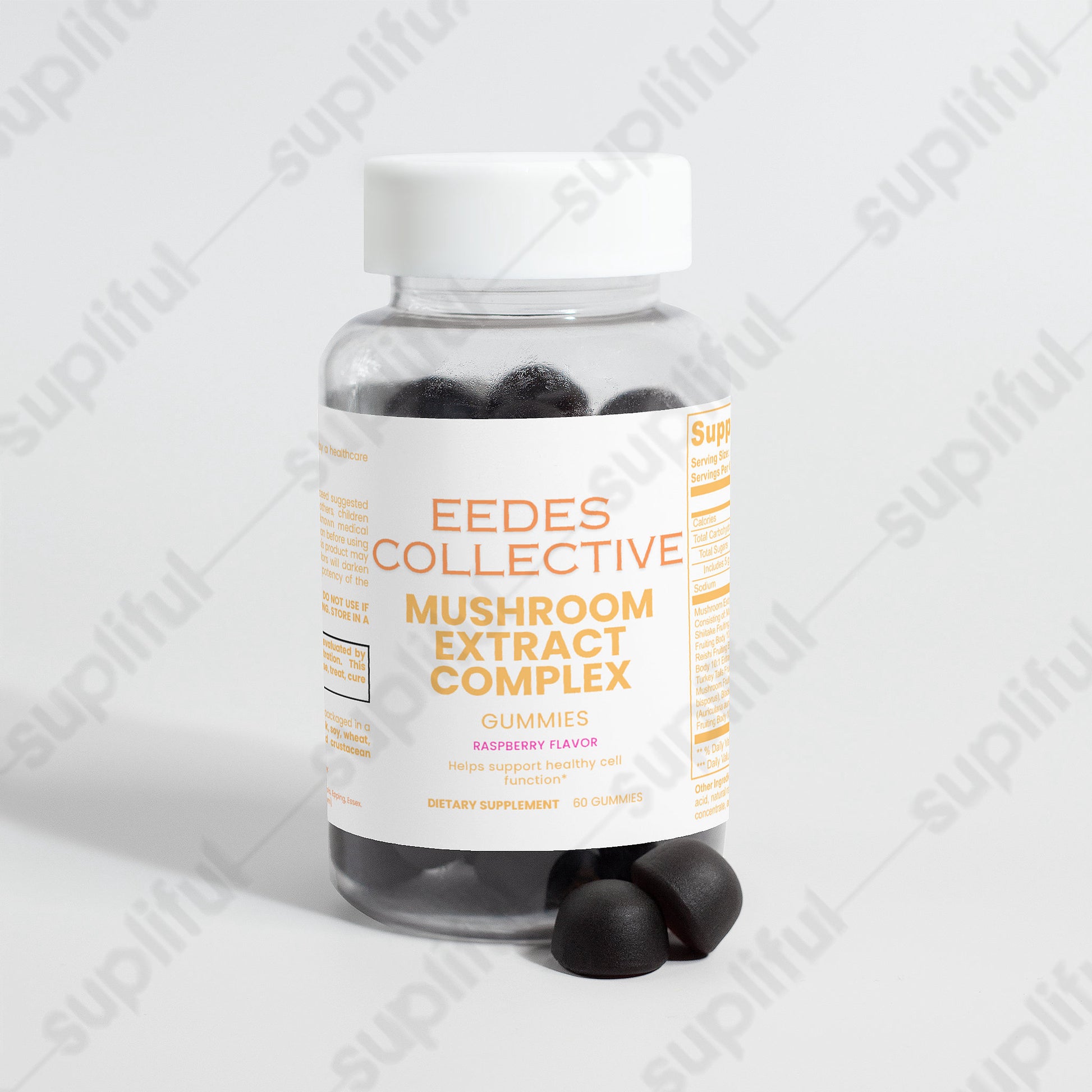 Ingredients: Mushroom extract (Maitake Fruiting Body 10:1 Extract, Shiitake Fruiting Body 10: 1 Extract, Lion’s Mane Fruiting Body 10:1 Extract, Reishi Fruiting Body 10:1 Extract, Cordyceps Fruiting Body 10:1 Extract, Chaga Fruiting Body 10:1 Extract, Turkey Tails Fruiting Body 10:1 Extract, White Button Mushroom Fruiting Body 10:1 Extract, Black Fungus Fruiting Body 10:1 Extract, Royal Sun Mushroom Fruiting Body 10:1 Extract), glucose syrup, sugar, dextrose, pectin, citric acid, natural raspberry flavor, sodium citrate, purple carrot juice concentrate, palm oil (contains carnauba wax).